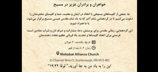 در صورت تمایل می توانید به جلسات کلیسایی ما بپیوندید و با هم خدای زنده را